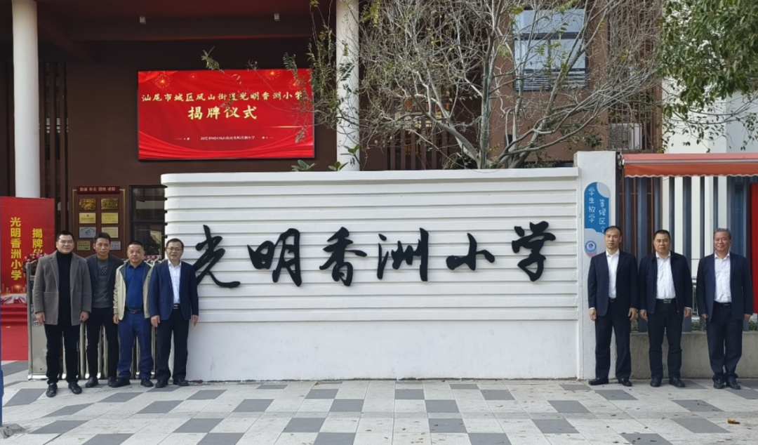 近日,凤山街道光明香洲小学举行揭牌仪式。深圳市光明区对口帮扶汕尾市城区工作组组长、区委常委、副区长张新顺,副区长周宏森、林史谦,深圳市光明区教育局党组成员、副局长、深圳光明区实验学校(集体)党委书记曾广波出席。