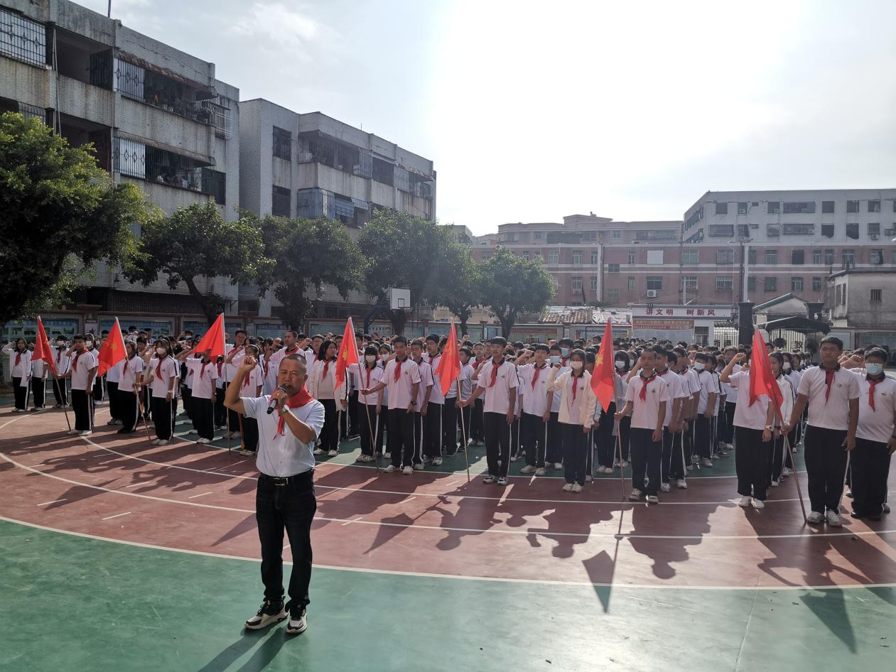 在庄严的出旗仪式后,全场高唱少年先锋队队歌,团总支黄绍明书记宣布香洲中学2022七年级各中队成立决定及中队少先队员名单,宣布七年级各中队辅导员聘任决定。