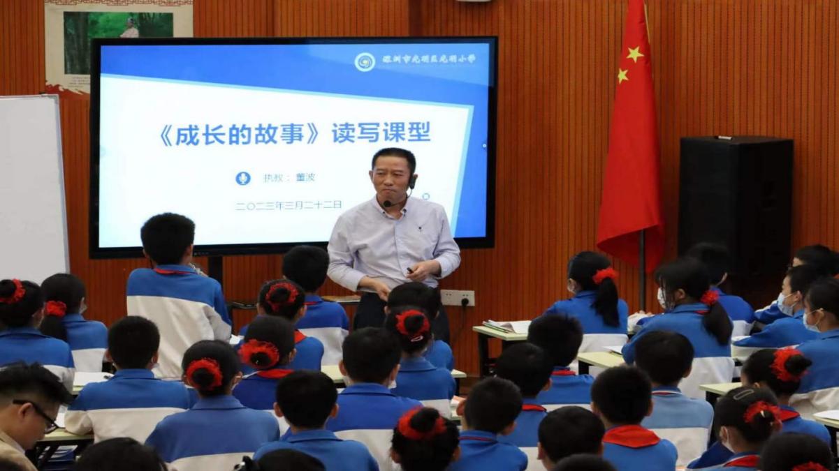 活动一:与会人员共同聆听了深圳市光明小学董波主任五年级下册第一单元《成长的故事》习作课。董主任以第一单元的主题“童年往事”为依托,采用了“1+N+1”读写一体化的特色课型引导学生品读《祖父的园子》第16自然段,让学生在读中感悟,学会和课本内容聊天,学会和课本内容对话,再通过比较阅读的方式,开阔了学生的阅读视角,丰富了学生的阅读情感体验,董主任紧扣《让课堂焕发生命活力》新常规,开发、运用课程资源,让学生通过观看视频《鹬》来开发学生的视角,引导学生从不同的视角去感受、注意细节、表述自己的感受,启发学生围绕主题“立意”表达自己的见解,做到精讲多练,将练在课堂中落到实处。课堂体现了:上课——扎实、充实、真实,突显了学生自主——合作——探究的学习方式,引导学生尝试有创意地表达自己的见解,教给学生打开阅读和写作立意的新视角,在学生的心中埋下了阅读的新种子。