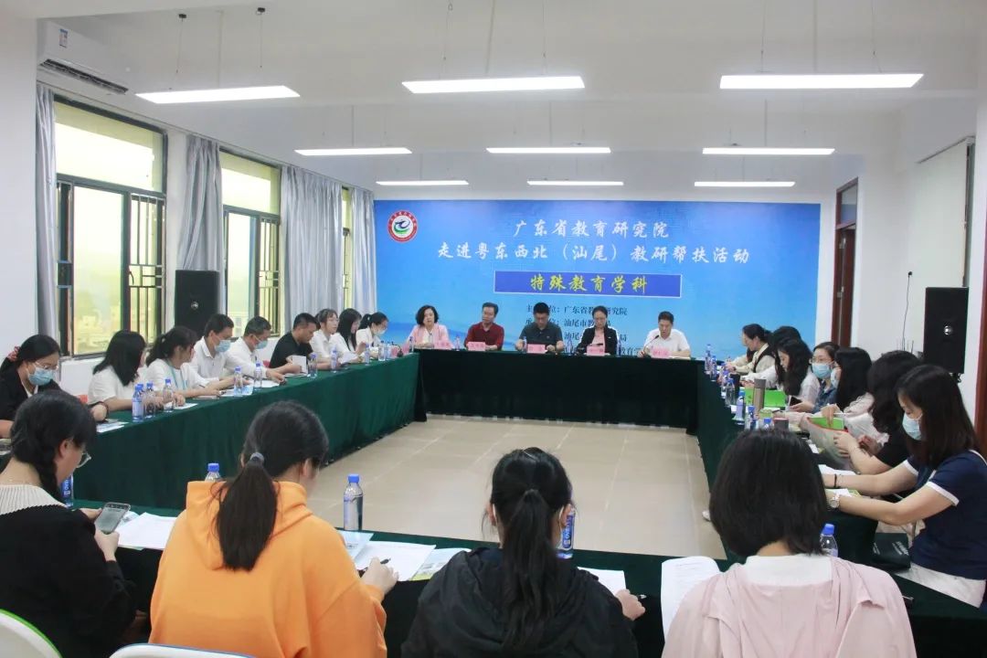 为积极推进全省基础教育高质量发展,充分发挥教研活动的助推作用及优质教育资源的辐射带动作用,助力汕尾基础教育高质量发展,切实提高教研帮扶工作的成效,2023年4月25日,由广东省教育研究院主办,汕尾市教育局、汕尾市城区教育局承办,城区特殊教育学校协办的广东省教育研究院 “走进粤东西北(汕尾)教研帮扶活动”特殊教育学科专场在汕尾市城区特殊教育学校举行。