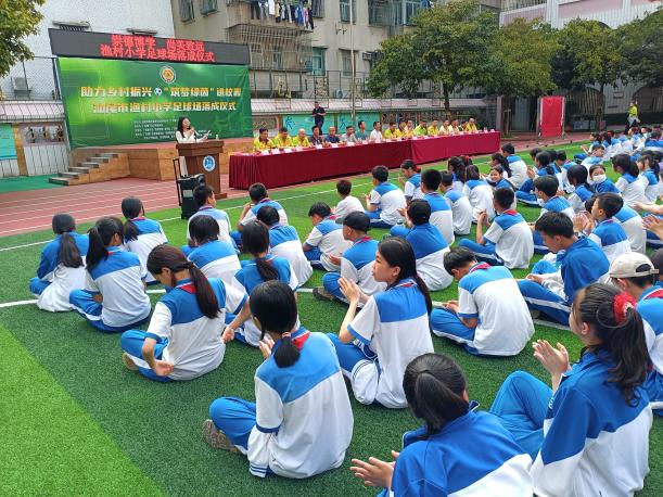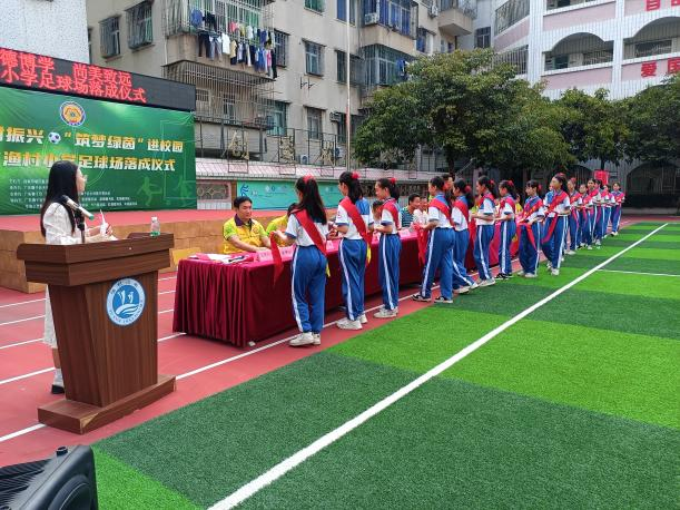 5月18日下午,这是一个草木峥嵘,繁花争艳的美好季节,广东狮子会广州天亮服务队现任队长詹永萍一行11人来到渔村小学进行“乡村振兴,筑梦绿茵进校园”汕尾市城区渔村小学足球场落成仪式。出席仪式的还有广东狮子会相关组织的负责人、区教育局教育股领导、学校领导和部分师生共300多人。