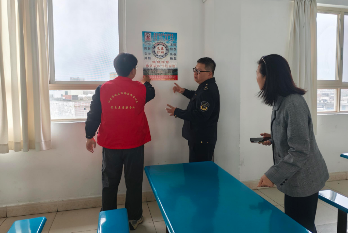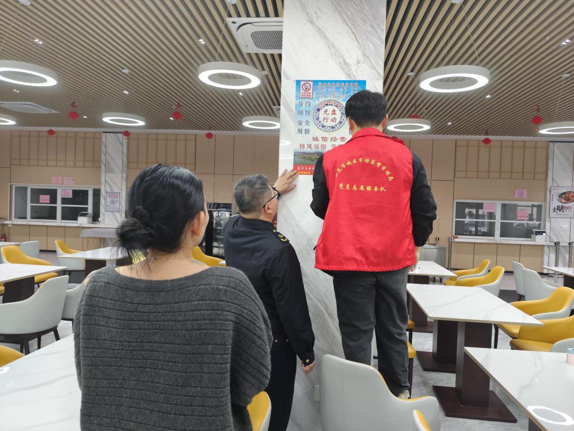 二是强化源头引导,筑牢思想防线。结合日常检查工作,组织执法人员深入辖区内机关食堂、学校食堂、餐饮单位,对餐饮场所的后厨卫生、食材储存、餐具消毒等关键环节开展规范指导,督促经营者严格落实食品安全主体责任,并紧扣食品安全、公筷公勺、反对餐饮浪费等关键内容,开展文明用餐宣传活动,通过现场讲解等方式,引导干部职工、学生、群众养成良好用餐习惯,切实提升辖区餐饮行业的服务规范与文明程度。同时,张贴“光盘行动”与“文明用餐”主题宣传海报,营造广大群众自觉践行文明、健康、绿色餐饮消费新风尚的氛围,让节约用餐、文明用餐的理念深入人心,累计张贴“光盘行动 文明用餐”“使用公筷公勺”等宣传海报2000余份,有效推动文明用餐水平与食品安全质量“双提升”。