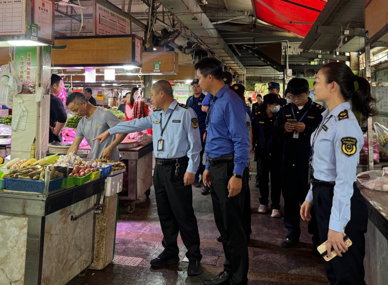 行动中,城区林埠、西门、新洲等14个重点市场划分4个整治片区,由牵头领导及驻场工作人员组成专项整治队伍,其他13个次重点市场同步开展整治。此次行动严格对照文明创建标准,围绕环境卫生、经营秩序、设施规范、消防安全、交通秩序、食品安全六大重点方面开展由表及里、从外到内的全覆盖大排查。环境卫生方面,重点清理市场内卫生死角、乱堆乱放杂物和散落垃圾,督促商户严格落实“门前三包”责任,及时清理经营废弃物,保持摊位及周边区域整洁;在经营秩序方面,严查占道经营、越线摆摊、乱搭乱建等行为,引导商户在划定区域内规范经营,清理取缔无序流动摊贩,保障市场及周边道路畅通;在设施规范方面,全面检查摊位、给排水、照明、公厕等基础设施,对破损、老化设施当场督促整改,确保各类设施正常使用。同时,将消防安全和食品安全作为整治重点,仔细检查市场消防设施配备、消防通道畅通及用电用火规范情况,及时消除各类消防隐患;在食品安全方面,严格核查商户经营资质,查验食品进货查验、索证索票制度落实情况,重点检查生鲜、熟食、粮油等民生食品质量,严防不合格食品流入市场。在交通秩序方面,重点整治市场周边车辆乱停乱放、占道违停问题,规范非机动车与机动车停放秩序,疏通通行道路,保障出行畅通有序。
