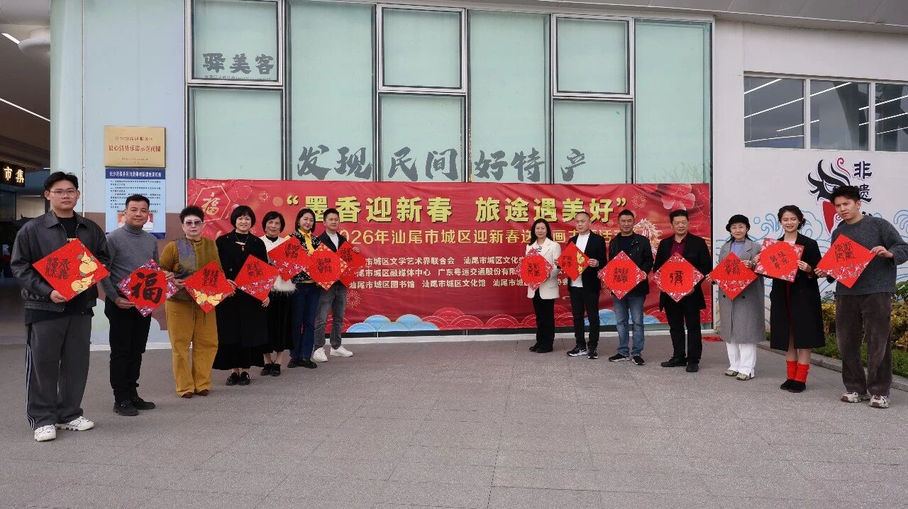 近日,“墨香迎新春 旅途遇美好”2026年汕尾市城区迎新春送年画主题活动在长沙湾服务区温情开展。活动将传统文化、民俗艺术与春运便民服务深度融合,将文化惠民延伸到交通枢纽,为往来旅客送上了一程充满温情的文化陪伴。