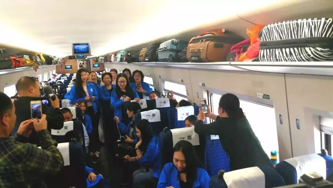 飞驰的列车上,人人满面春风,处处欢声笑语。