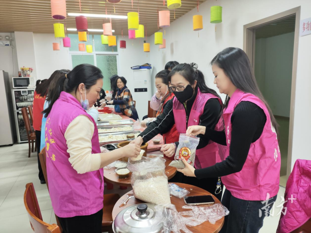 12月20日上午,汕尾市城区凤山街道文亭社区邻里食堂里活动现场热闹非凡,巾帼志愿者们早早地来到场地,将准备好的汤圆材料、擂茶工具等摆放得整整齐齐。