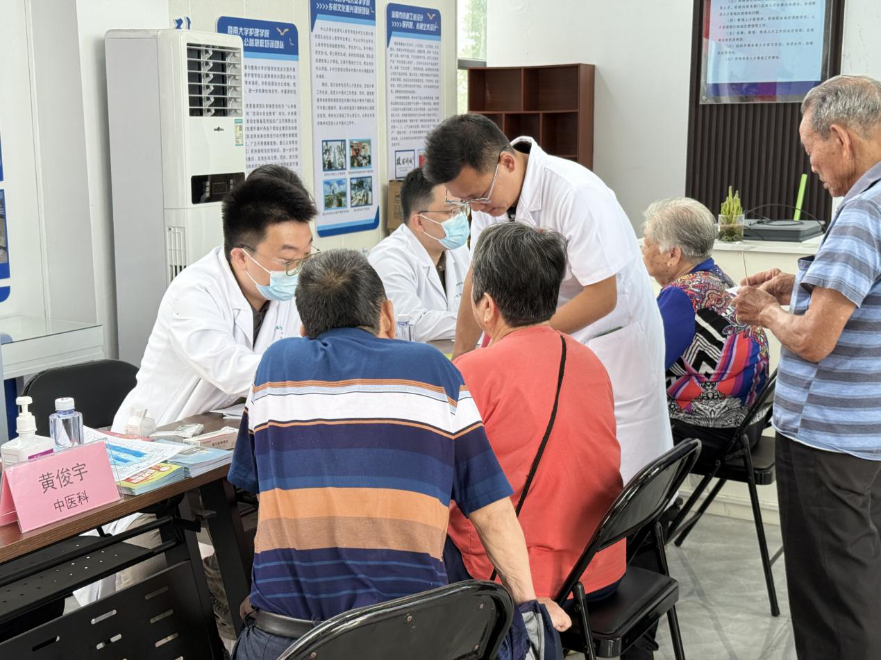 活动现场设置了多维度健康服务项目,为群众进行血压、血糖等基础指标检测,实现慢性病“早发现、早干预”;心血管内科专家带来《高血压科学管理》健康讲座,用通俗语言传授血压调控知识,提升群众自我健康管理能力;中医科专家现场演示中医耳穴压豆疗法,让村民在缓解常见不适症状的同时体验传统医学的独特魅力;药学部党员药师全程提供用药咨询服务,针对慢性病用药、日常用药误区等问题进行细致解答,同时向群众免费赠送常用药品,切实为群众健康“添砖加瓦”。
