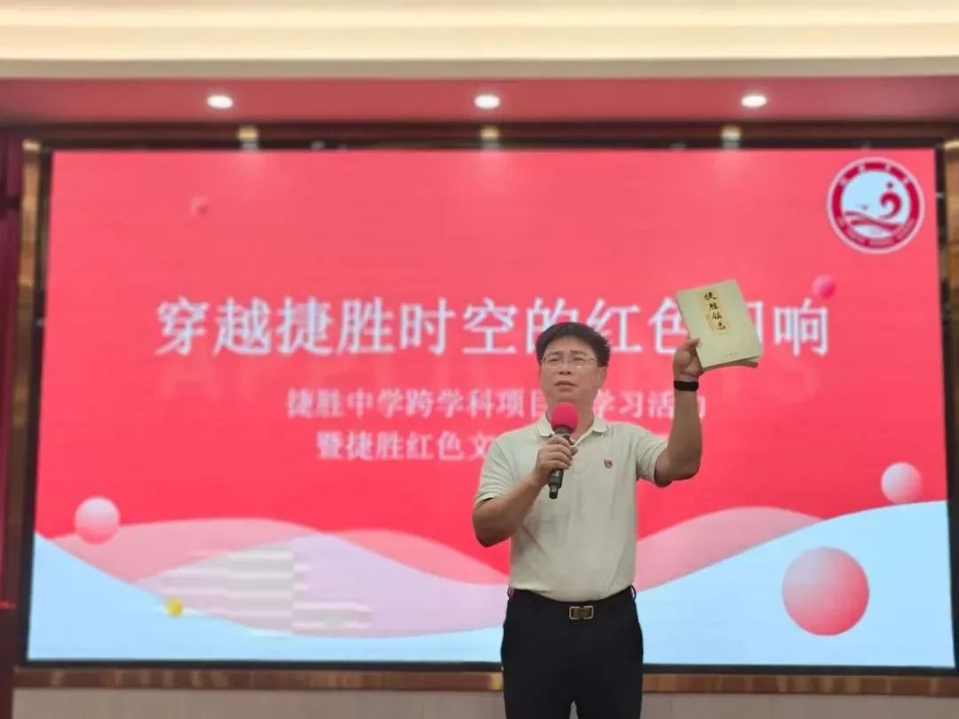 何纯宾书记在总结中高度肯定项目组“用脚步丈量历史”的实践精神,现场展示《捷胜镇志》中记载的革命史实,分享捷胜红色故事。他勉励团员把红色基因融入成长坐标,不仅要做红色文化的学习者,更要成为传承者,从地方志中读懂初心,在实践中让革命精神焕发新生机。