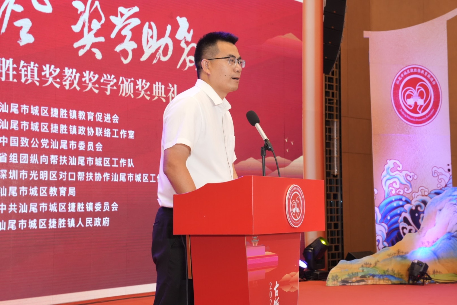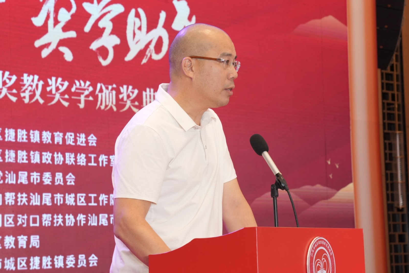 典礼上,促进会会长罗小斌致辞,捷胜镇教育促进会成立的初心,是为家乡教育“添柴加薪”,让优秀教师安心从教,让勤奋学子获得激励。下一步,促进会将扩大奖教奖学覆盖面,完善激励机制,让耕耘有收获、梦想能开花。恳请社会各界继续携手,用爱心滋养教育,让捷胜教育土壤更肥沃,少年儿童更茁壮。
