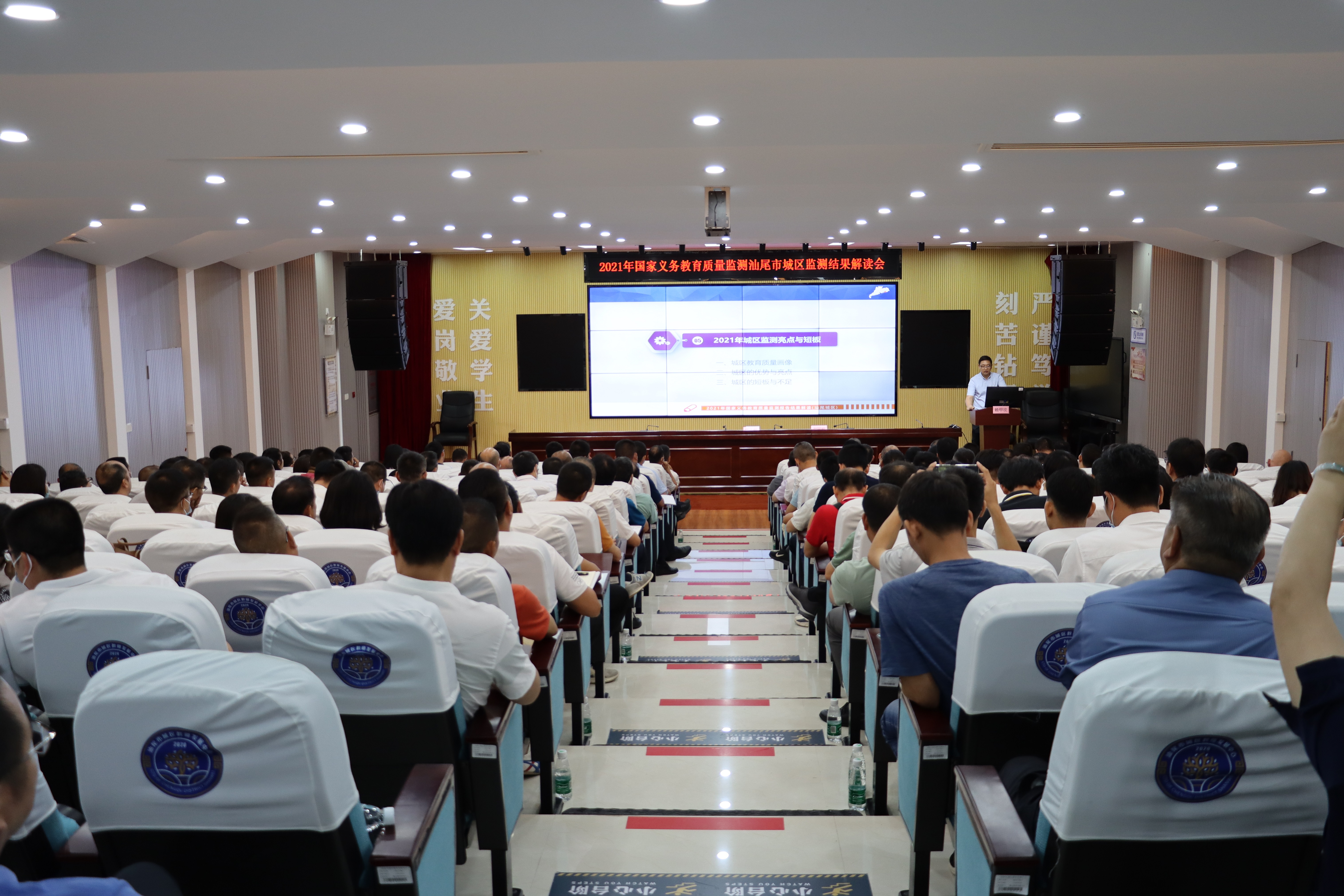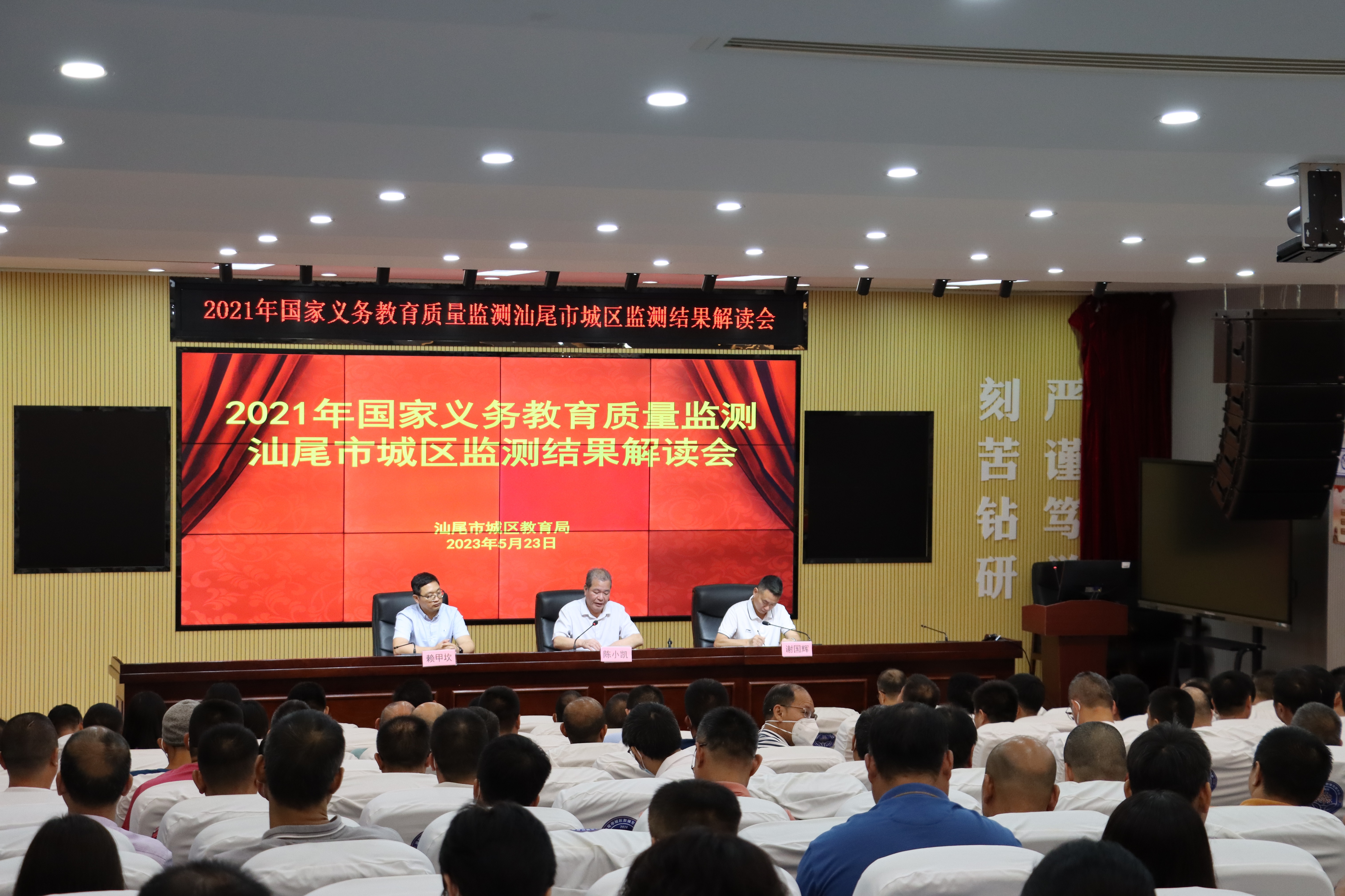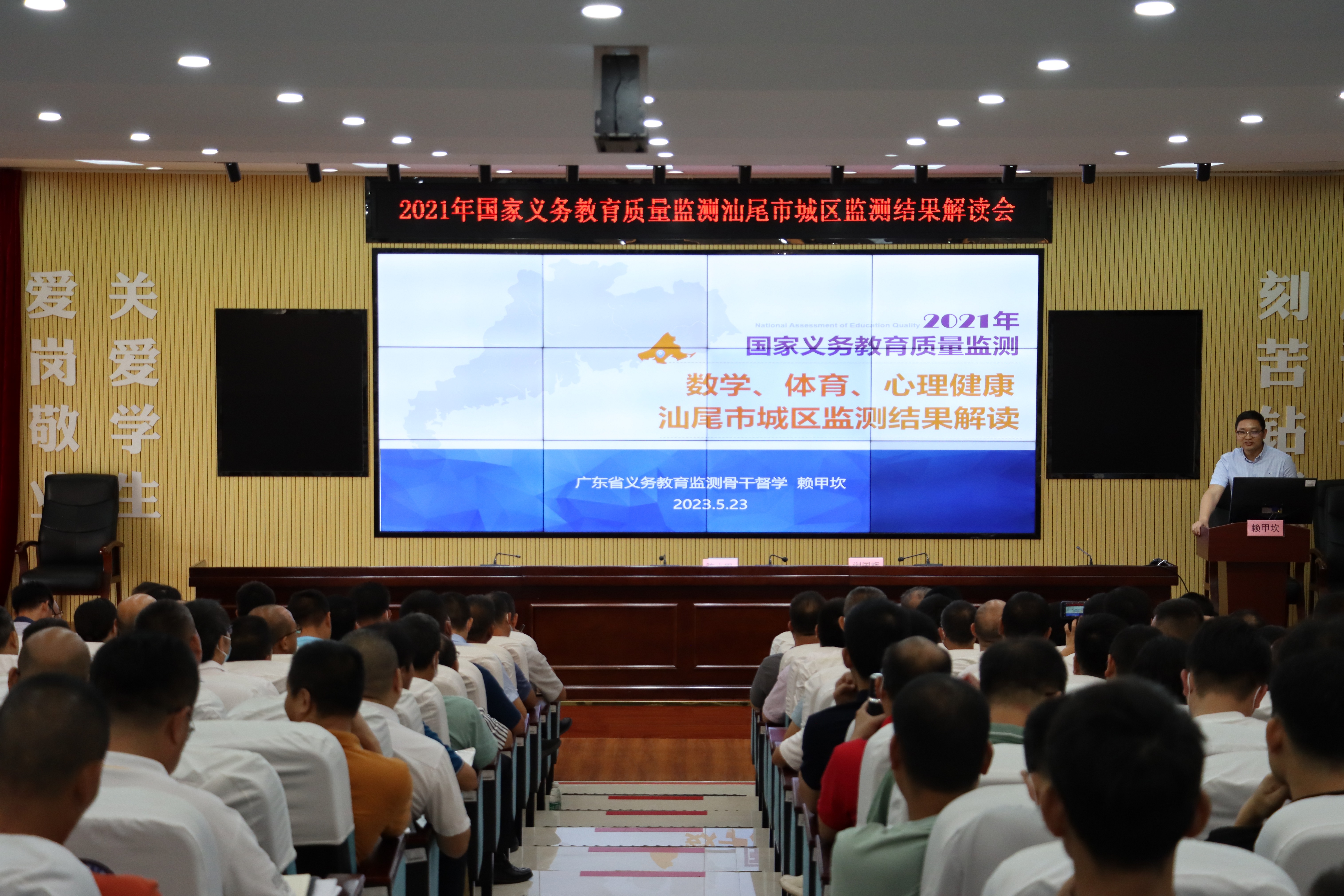 为加强2021年国家义务教育质量监测我区(数学、体育与健康、心理健康)监测数据的挖掘运用,帮助我区准确了解教育质量状况,有效发挥监测诊断、改进、引导功能,引领推动教学改革、改进教育教学管理,根据上级文件要求,2023年5月23日,汕尾市城区教育局在区教师发展中心召开2021年国家义务教育质量监测汕尾市城区监测结果解读会。会议邀请了广东省义务教育质量监测骨干督学赖甲坎专家对2021年国家义务教育质量监测我区数学学习质量、体育与健康、心理健康状况监测结果进行深度解读。区教育局党组书记、局长陈小凯出席会议并讲话,区教育局党组成员、分管督导工作领导谢国辉主持会议。