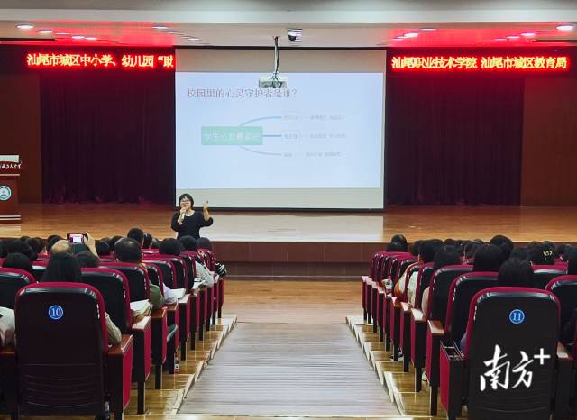 3月27日下午,汕尾职业技术学院、汕尾市城区教育局联合举办“校园里的心灵守护者——心理教师工作策略”心理健康教育培训会,邀请深圳市盐田区心理健康教研员林映担任主讲,300余名中小学、幼儿园教师在汕尾市城区逸夫中学现场参加培训会。
