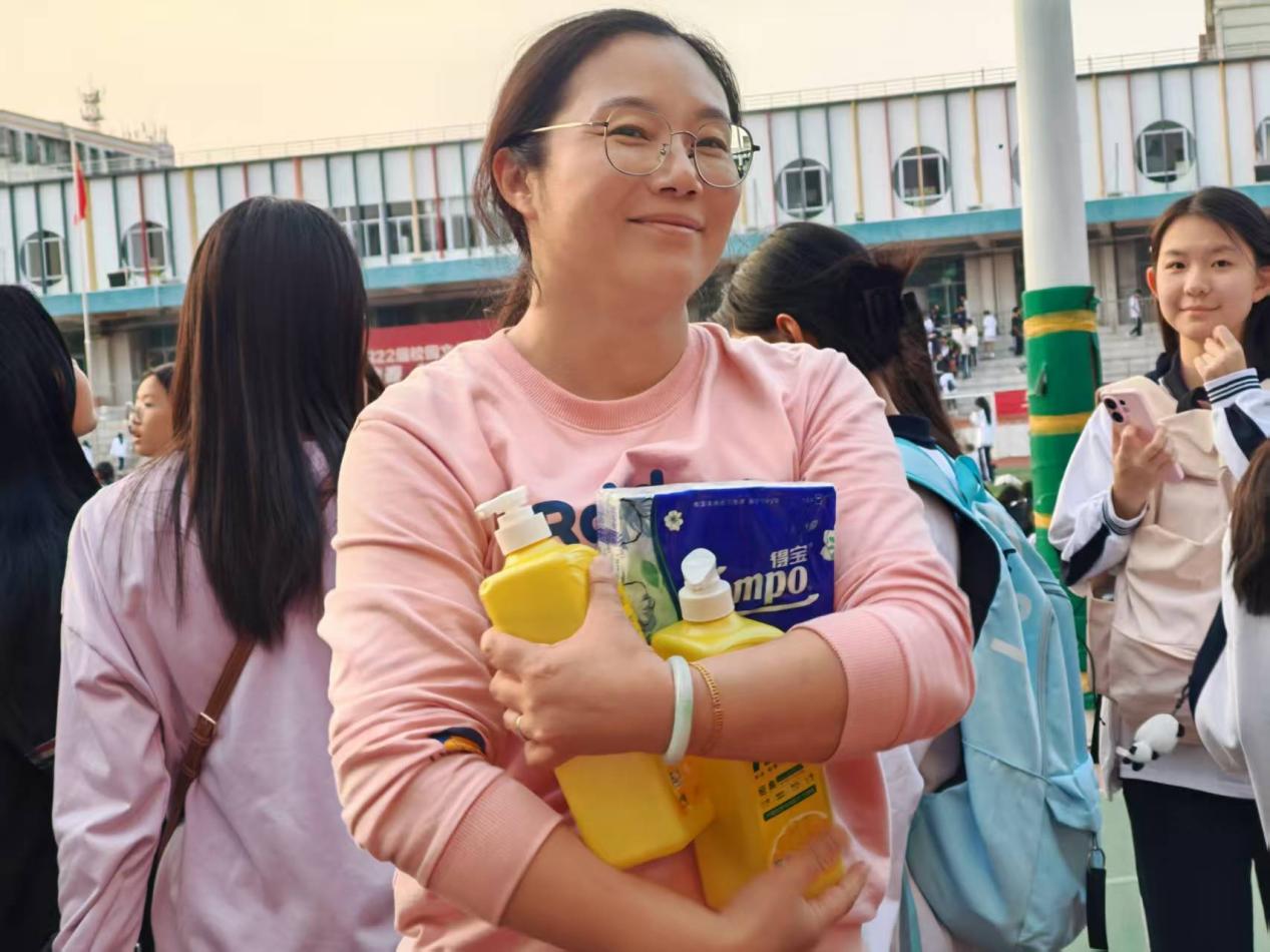 另一场的抢宝贝比赛则将欢乐氛围推至高潮。两人一组面对小凳而立,听着口令摸头部、耳朵和膝盖,随着一声“抢”字落下,老师们瞬间俯身冲刺,身手敏捷地抢夺凳上的生活用品。有人反应神速率先得手,高举奖品与对手相视大笑;有人慢了半步,却也乐呵呵地摆手再战,两次机会里满是轻松与趣味。赛场边的加油声、哄笑声交织成一片,平日里的工作压力在这一来一回的比拼中烟消云散。