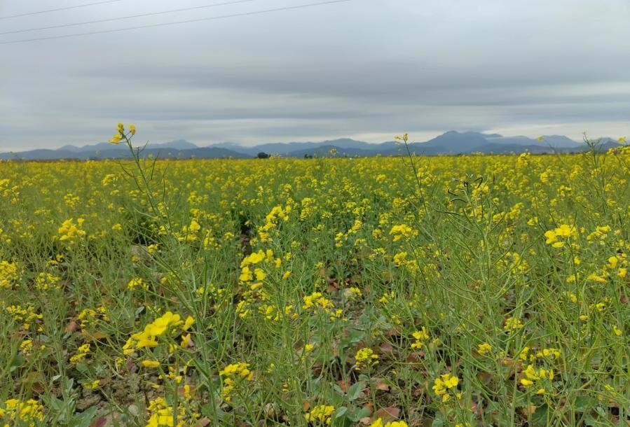 示范区种植油菜花选择早熟耐寒的青杂9号,确保生长期适中,花期长。于12月中下旬用无人机撒播,每亩用种1.5公斤。并亩施复合肥50余斤,确保油菜花的健康生长,生长期间视情况喷撒除草剂及杀虫剂。