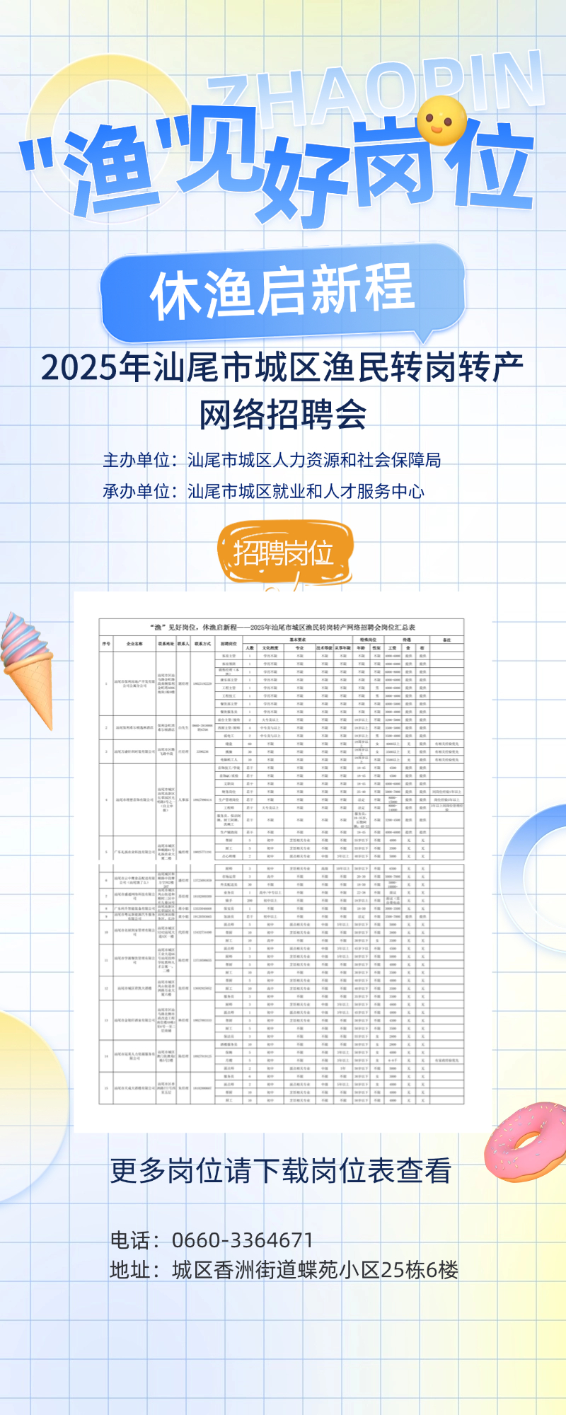 “渔”见好岗位,休渔启新程——2025年汕尾市城区渔民转岗转产网络招聘会岗位汇总表.xlsx