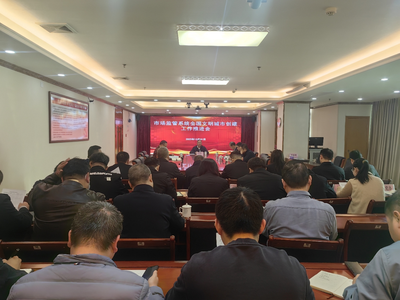 12月31日,市市场监管局召开市场监管系统全国文明城市创建工作推进会,传达学习全市精神文明建设工作会议暨全国文明城市创建工作推进会精神,总结上阶段市场监管系统创文工作,分析当前形势和存在问题,安排部署下一阶段重点任务。市局党组书记、局长赖建利出席会议并讲话。