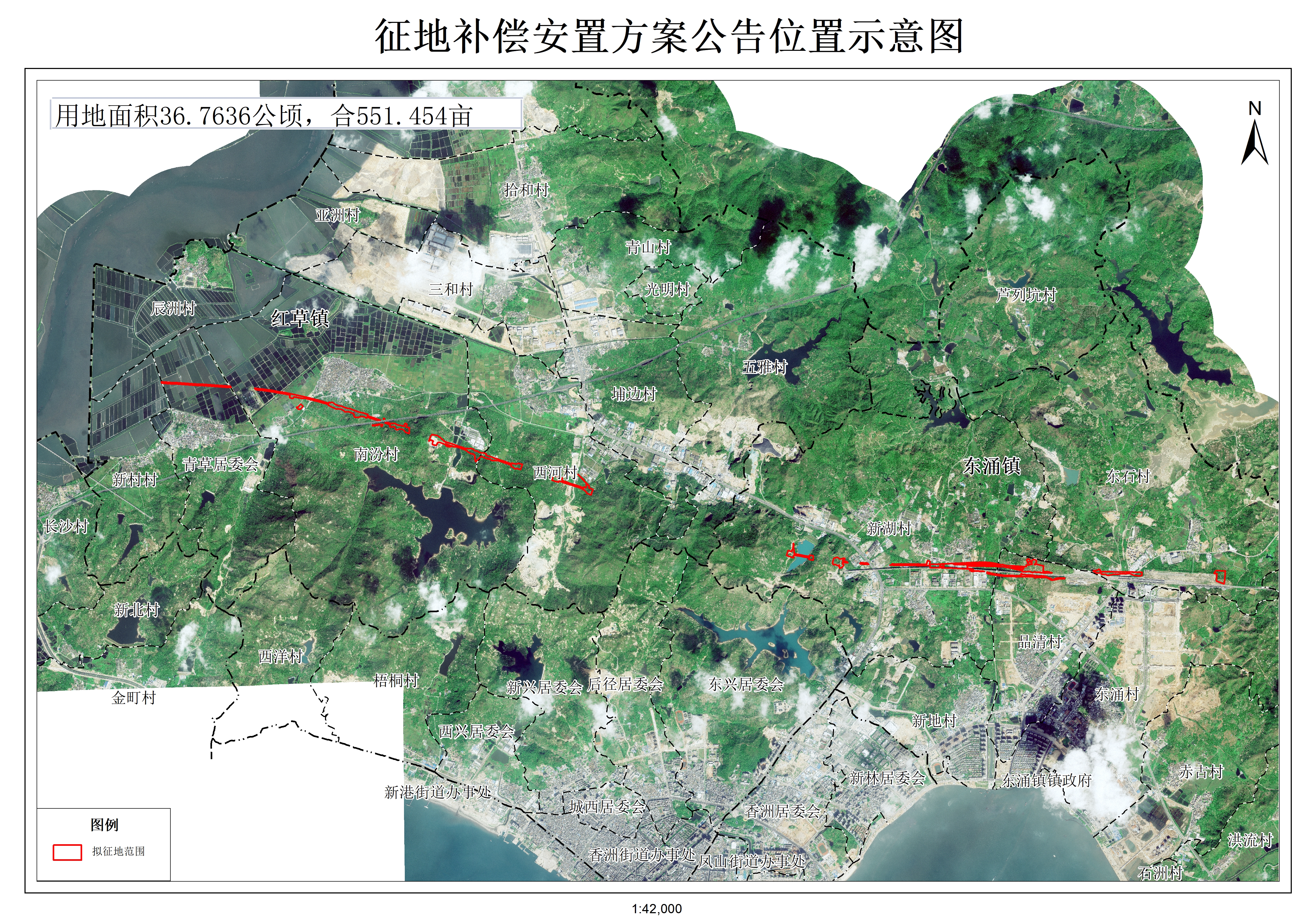 拟征收土地位于汕尾市城区红草镇青草股份经济合作联合社、红草镇南汾股份经济合作联合社、红草镇南汾村第六经济合作社、红草镇南汾村第三经济合作社、红草镇南汾村第二经济合作社、红草镇南汾村第七经济合作社、红草镇南汾村第四经济合作社、红草镇南汾村第一经济合作社、红草镇西河经济联合社、红草镇西河村桥余股份经济合作社、红草镇西河村西门股份经济合作社、红草镇西河村桥吴经济合作社、东涌镇新湖村桂青经济合作社、东涌镇新湖村东加冲股份经济合作社、东涌镇新湖村三联经济合作社、东涌镇新湖村湖田经济合作社、东涌镇品清股份经济合作联合社、东涌镇东石村大园经济合作社、东涌镇东石村崎坑经济合作社范围内,具体位置详见附图。